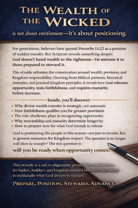 Wealth of the Wicked unpacks the divine principle that God’s provision is not a handout, but an opportunity that demands faithfulness, wisdom, and readiness.